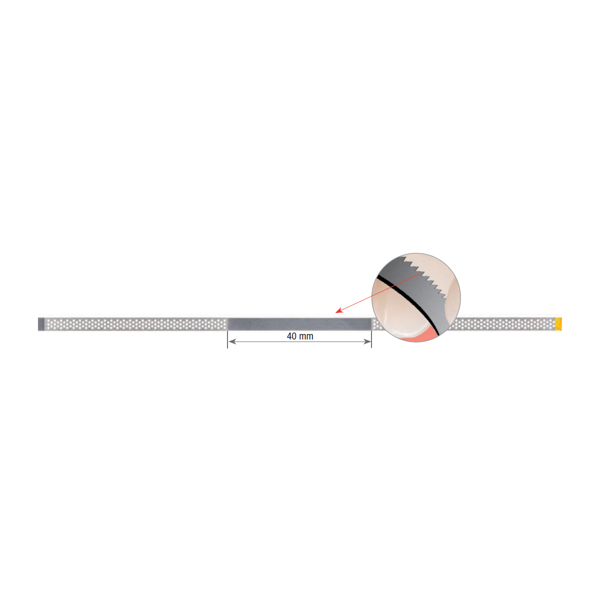 Flergångs och enkelsidiga diamantstrips för konturering och borttag av överskott approximalt. Den höga kvalitén gör att de håller längre utan att gå av. Autoklaverbara.Stripsen har ett blankt parti på mitten. Längd: 147mm Grovlekar:Blå = 45myRöd = 30myGul = 15my