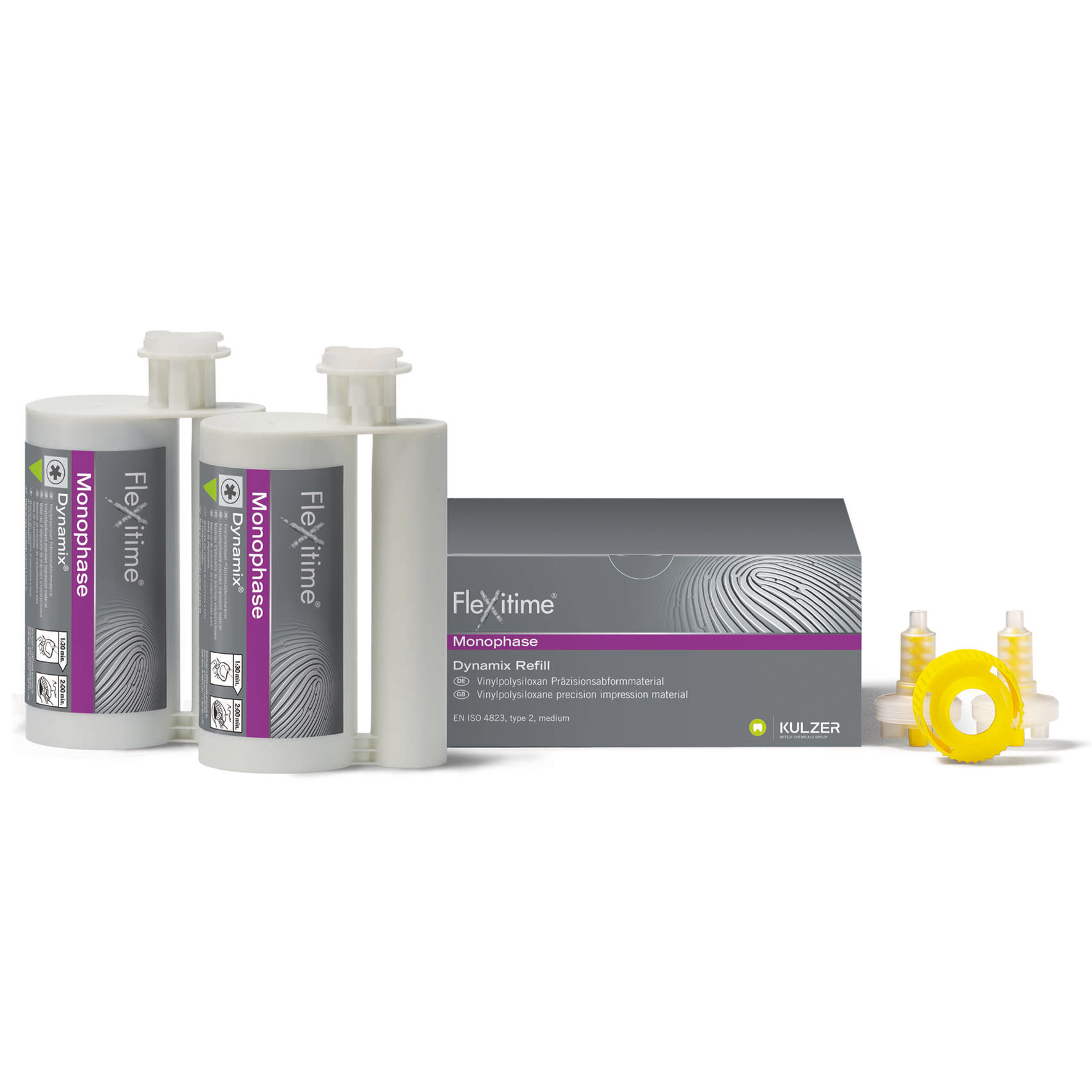 A-silikon avtrycksmaterial i kasetter till Dynamix blandningsmaskin Innehåll : 2x380ml Färg: violett
