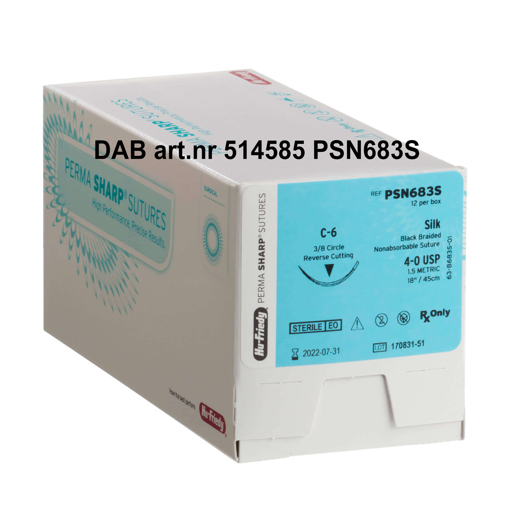 Perma Sharp suturer är speciellt framtagna för tandvården. Nålen är tillverkad av en stark alloy med vass och tunn spets som gör att det behövs upp till 20 % lägre tryck för att penetrera slemhinnan. Nålens anatomi är utformad för att ge så lite vävnadsskada som möjligt. Flätad svart tråd, ej resorberbar.