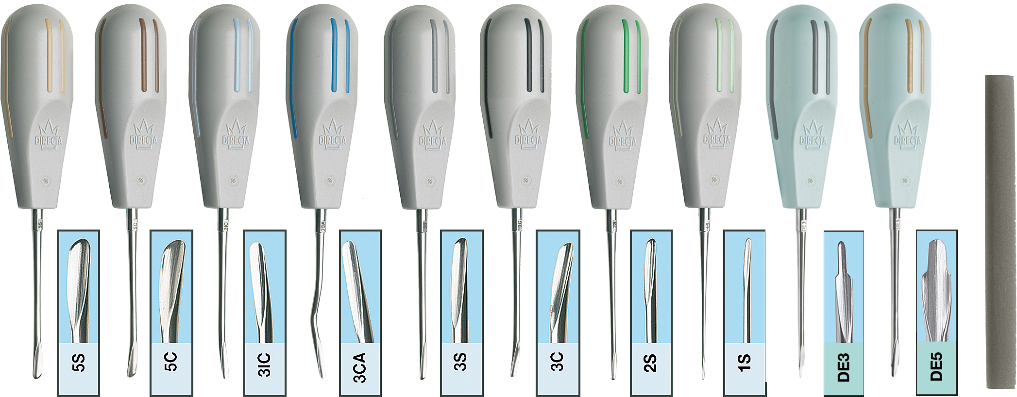 Luxator® Periotom – luxationsinstrument speciellt utformat för att luxera tänder. Den tunna och vassa spetsen skär av ligamenten samtidigt som käkbenet i alveolen komprimeras så att tanden försiktigt frigörs från alveolen. Luxator® Periotom används i tandens axiala längdriktning.