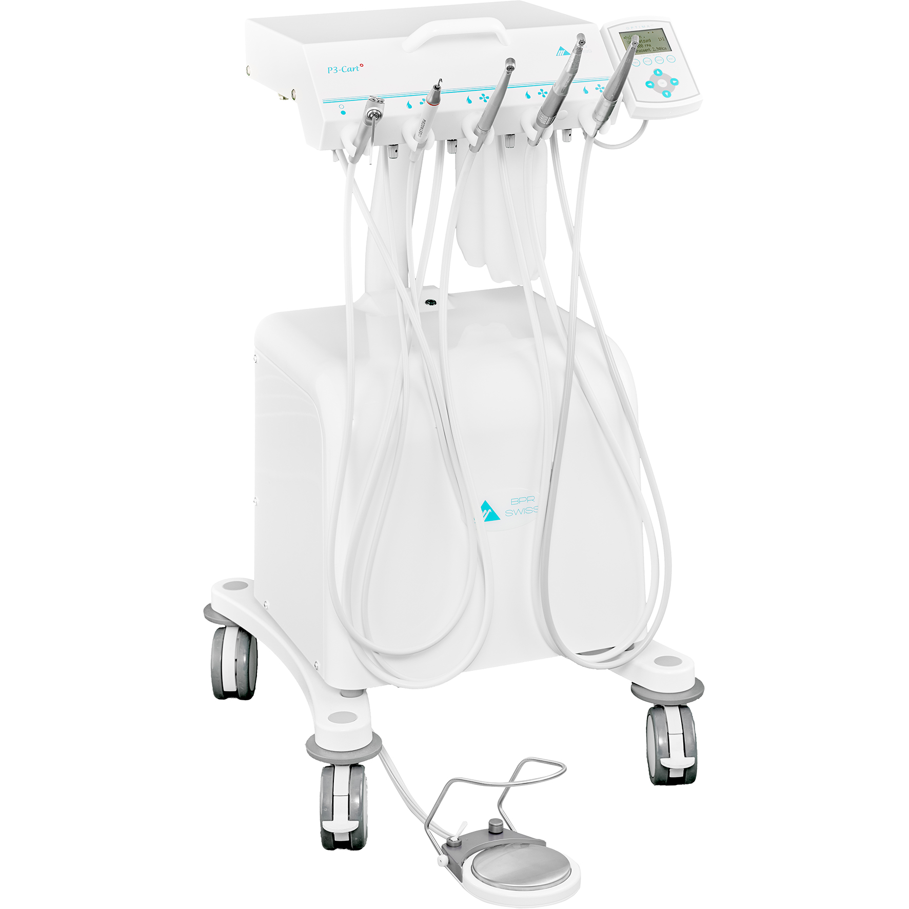 I grundutförandet är P3 Cart bestyckad med 4 st turbinslangar (med ljus), men detta ändras enkelt vid beställning om man t.ex. föredrar 1 st turbinslang, 1 st lågvarvsmotor och 1 st scaler.Bara nämn dina önskemål och behov för din DAB-representant så tittar vi på vilka tillval som passar dig bäst.