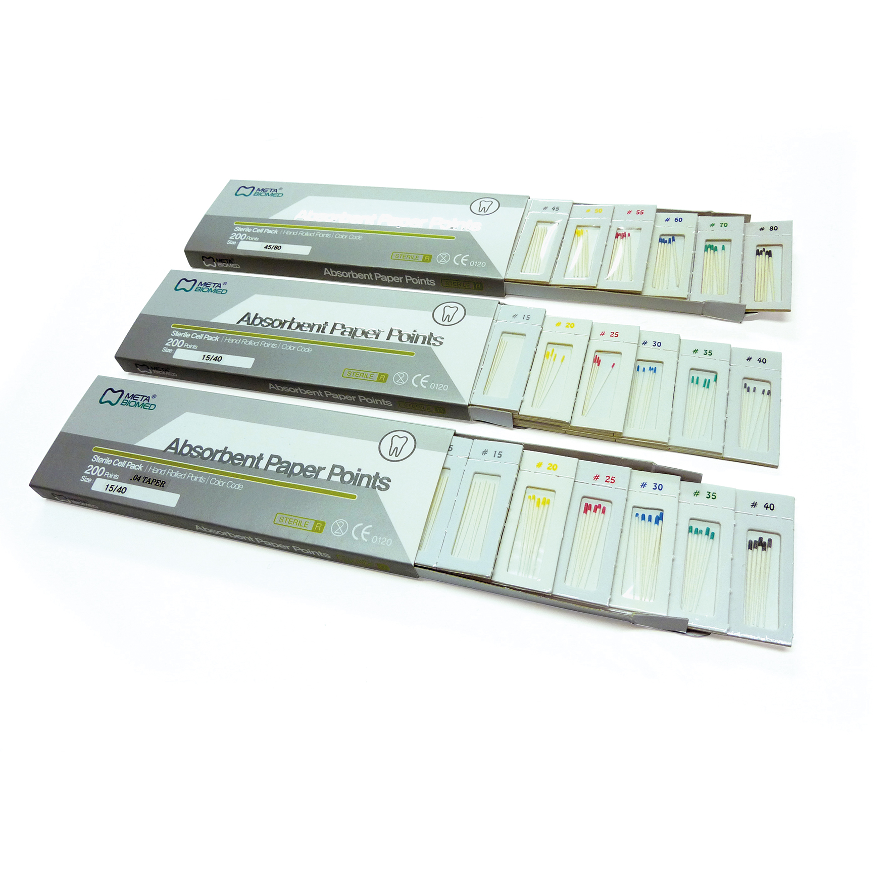 Sterilförpackade pappersspetsar. Taper 2 40 x 5 st.