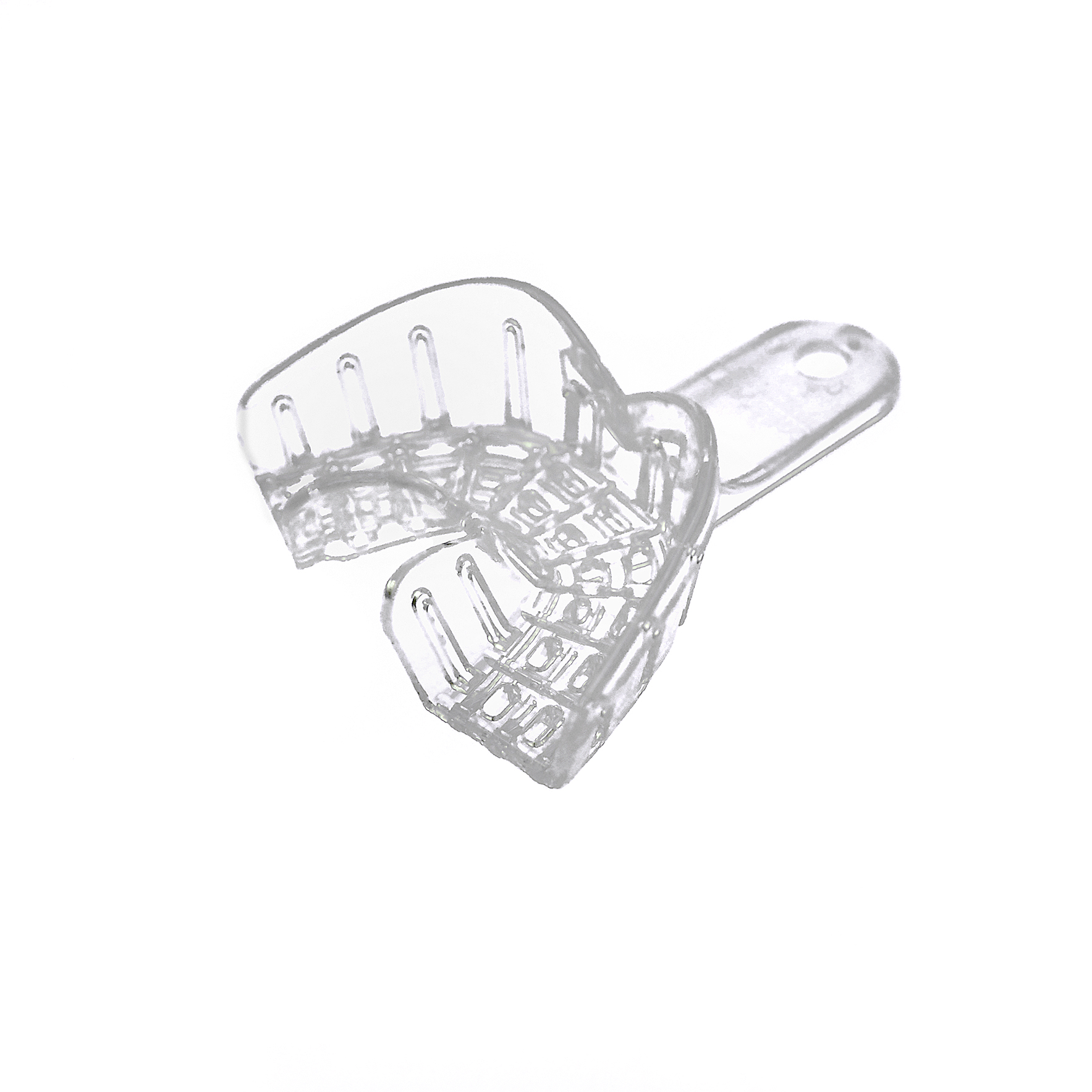 Transparent formstabil avtryckssked för engångsbruk.Finns i tre storlekar för över- och underkäke samt för partiella avtryck.