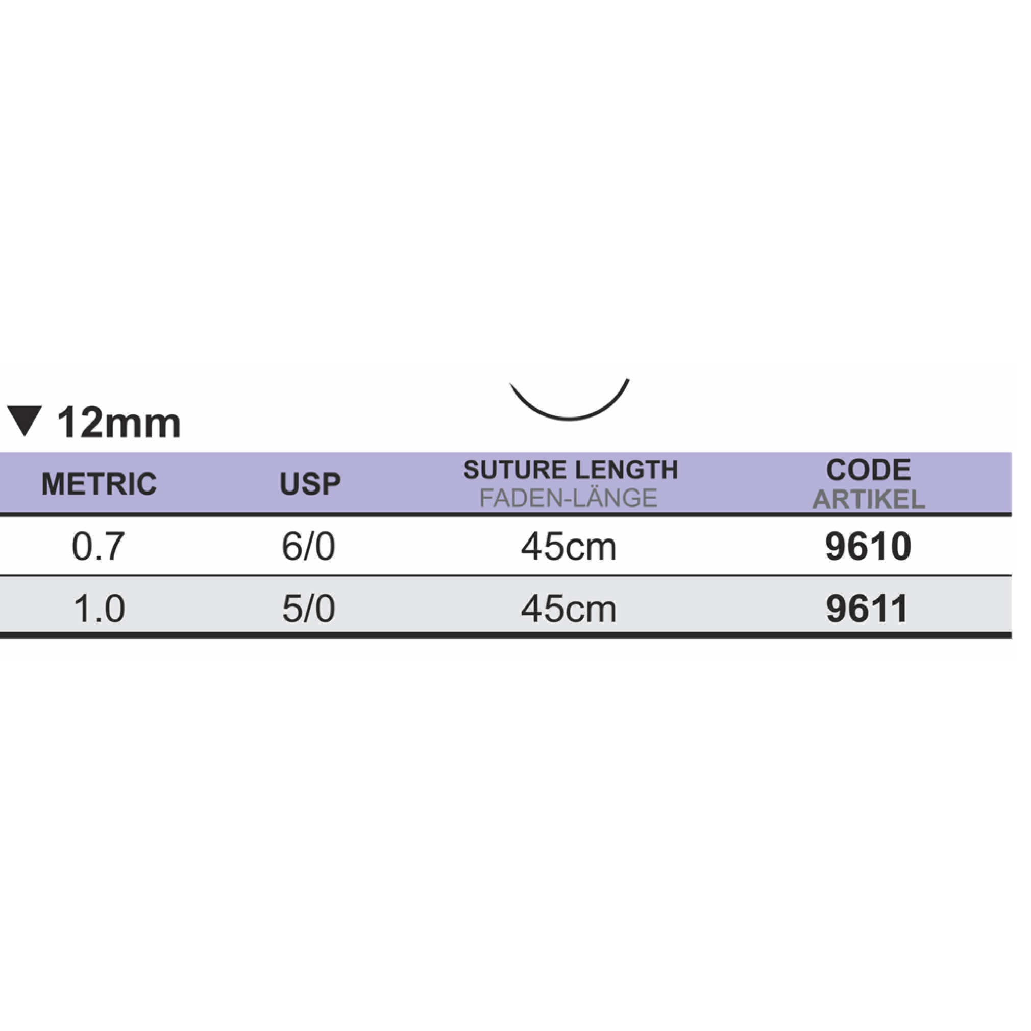 Medipac Sutur, PGA, 6-0, 0.7, 12 mm, 45 cm, 9610