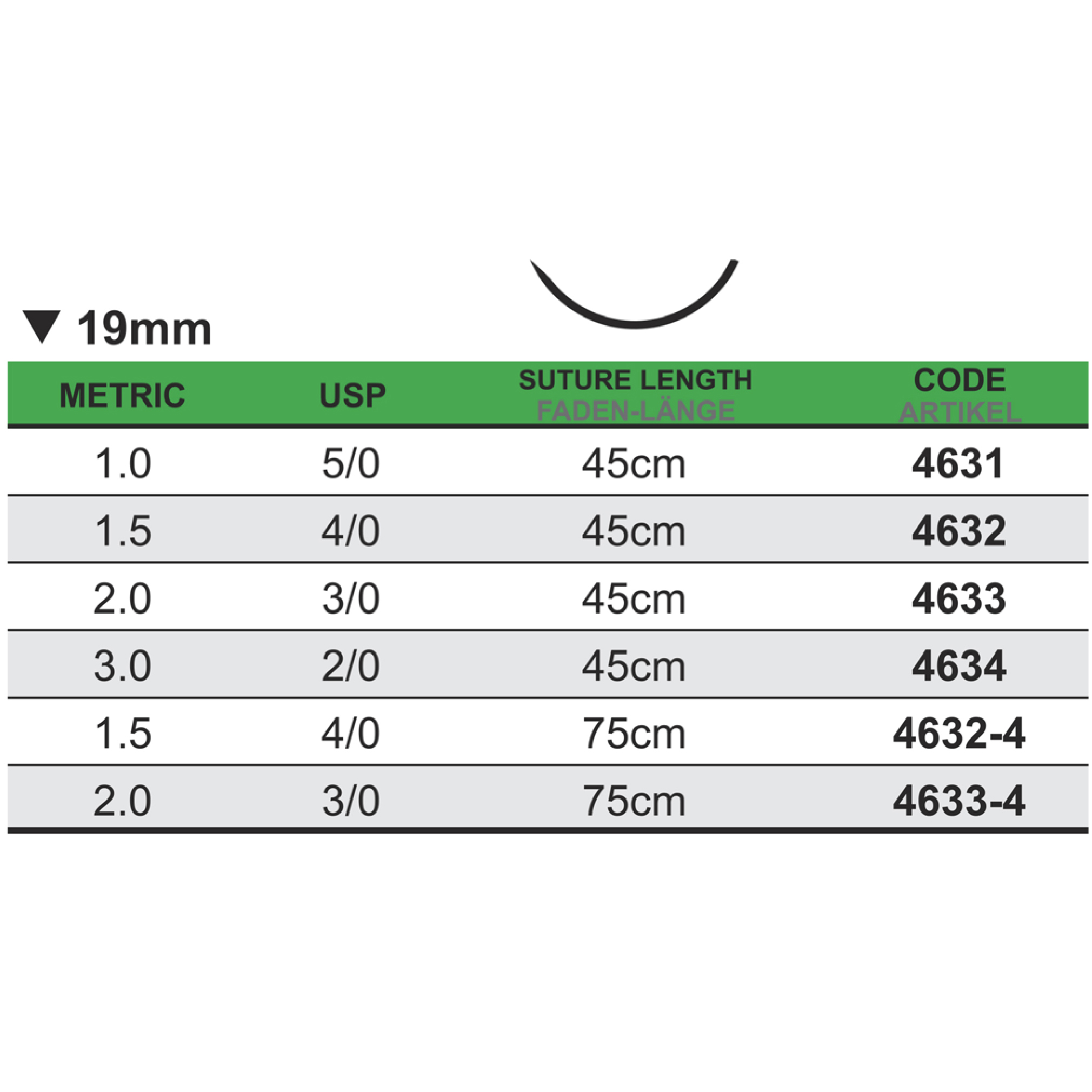 Medipac Sutur, Polyamid, 3-0, 1.5, 19 mm, 75 cm, 4632-4