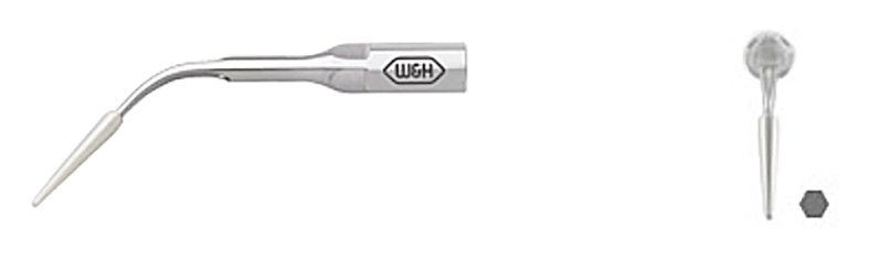 Spets specialanpassad för scaling och rengöring på fixaturer. Konformat plastöverdrag för utmärkt arbete på titanytor samt andra känsliga material. Bra åtkomst tack vare sin design.
