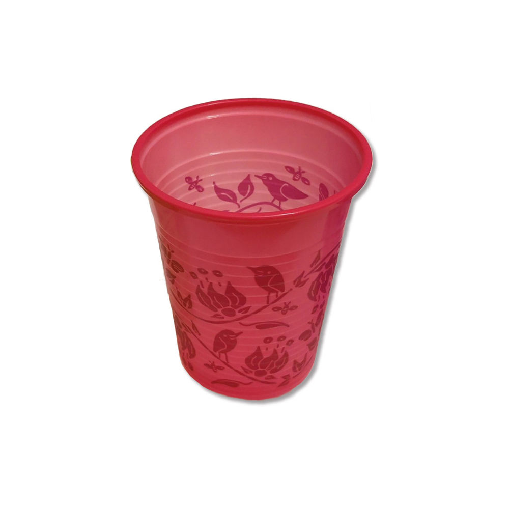 Mönstrad bägare 18 cl i 3 olika färger, tillverkade av polypropylen.