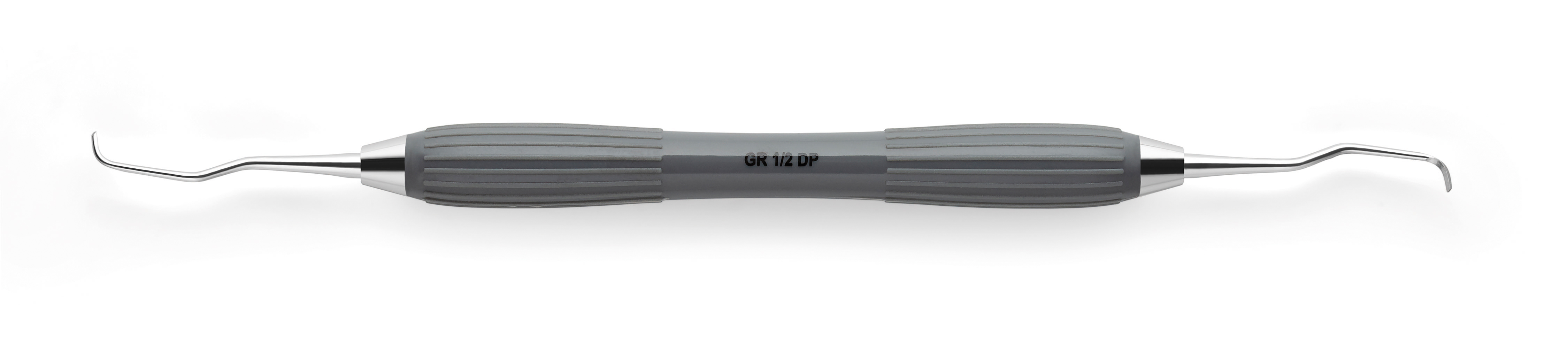 För incisiver och premolarer med djupa fickor. Längre arbetsdel. Silikonhandtag, stålkon mellan arbetsdel och silikonhandtag. Diameter grepp: 11,5mm. Grå
