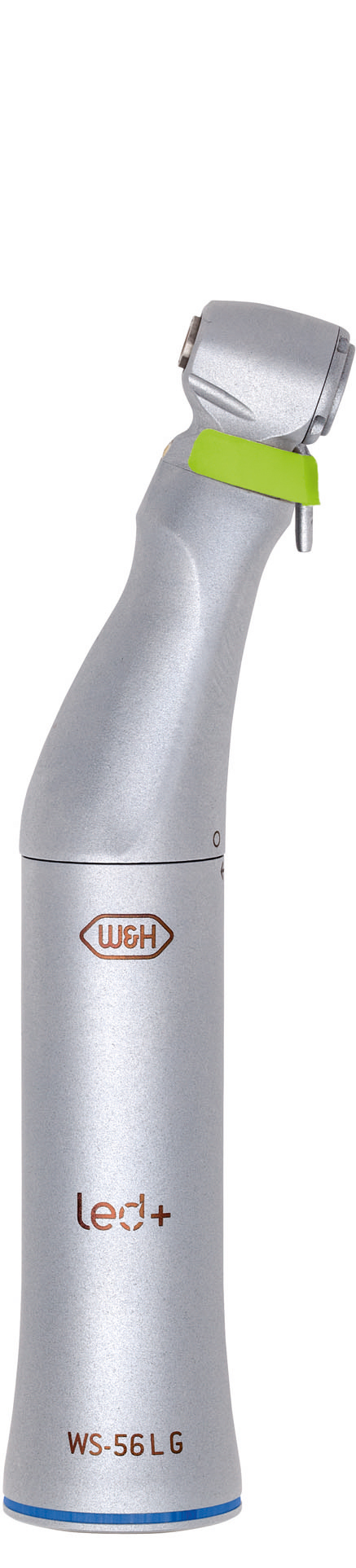 WS-56 LG Ett rakt växlat (blått) kirurgivinkelstycke med ergonomisk design. Mini LED+ med integrerad generator för oberoende strömförsörjning och naturlig återgivning av röda färgtoner. Tillverkat i rostfritt stål med specialbeläggning som håller instrumenten snygga år efter år. Enkelt att plocka isär för optimal rengöring.
